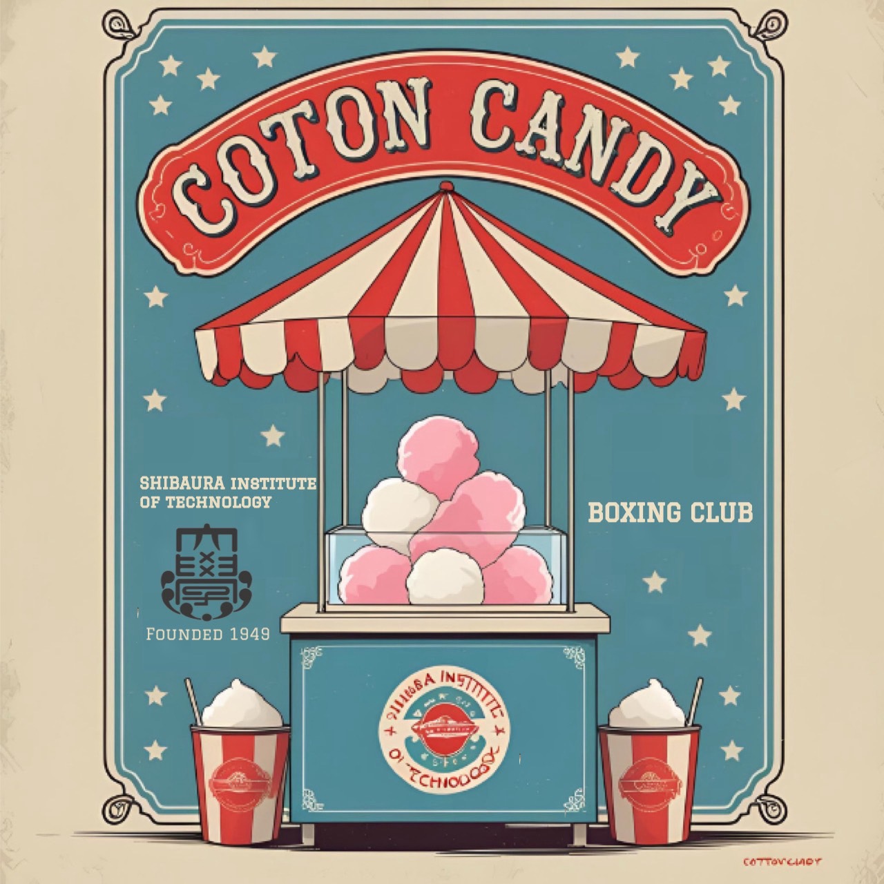 ボクシング部です!私たちが全力で作る、ふわふわ絶品わたあめ!甘さだけでなく、見た目も映えるレトロでポップな屋台が目印です!